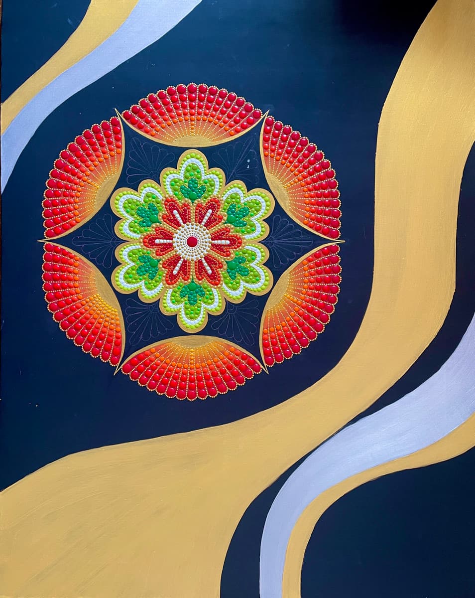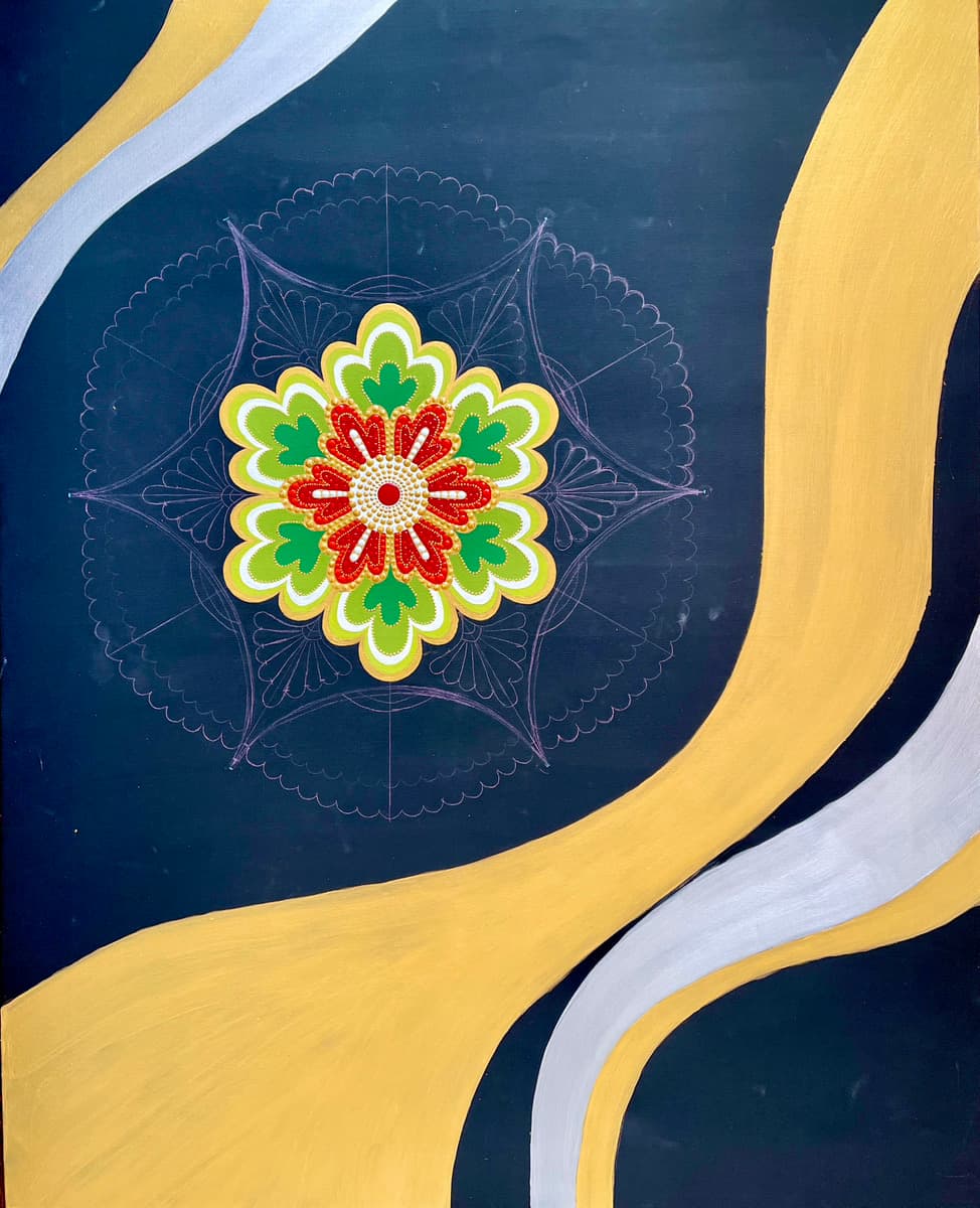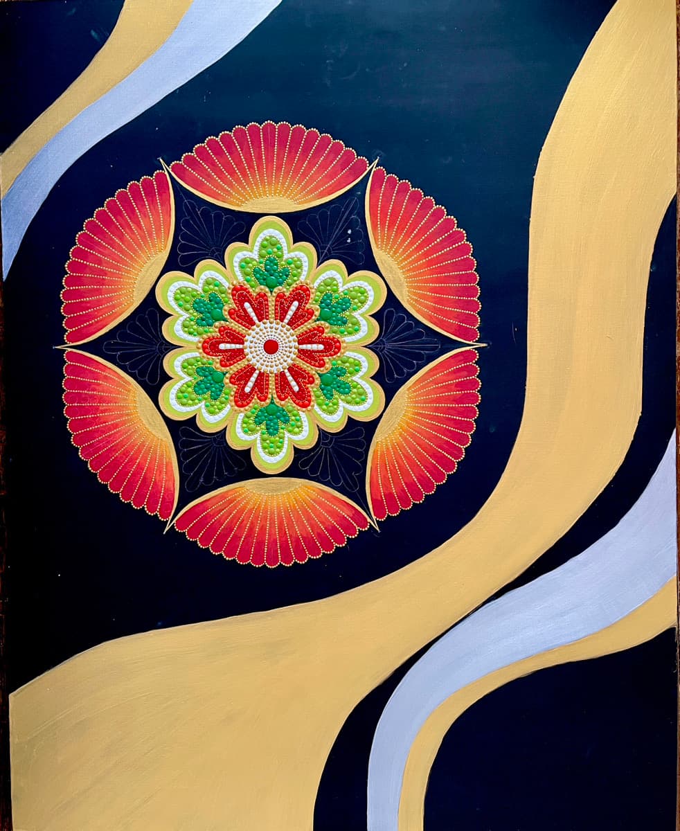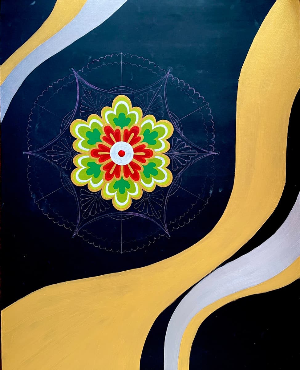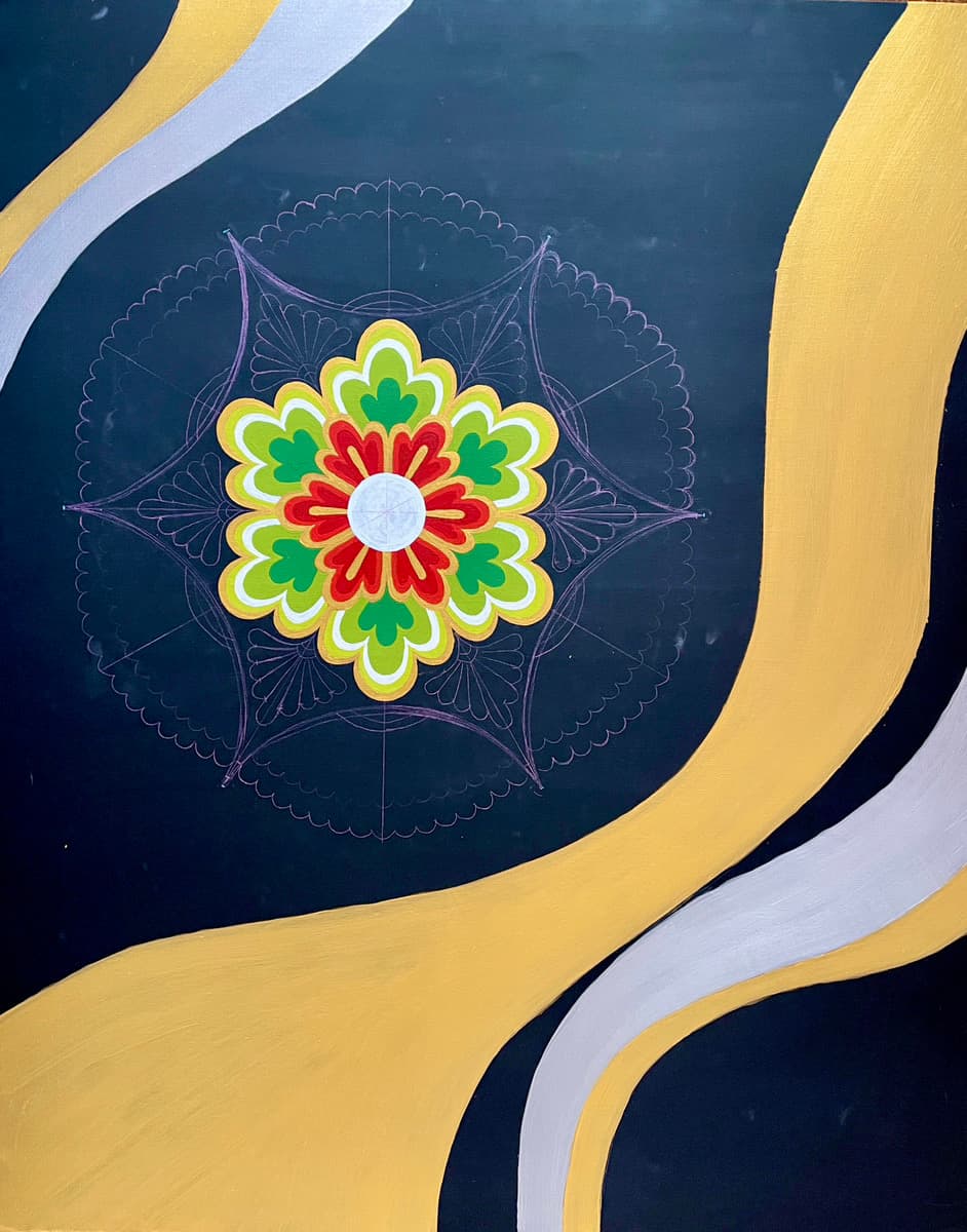 2025年 アクリル絵具・金箔、銀箔、キャンバスサイズ 35.6in ✕28.6in( 91.0cm✕72.7cm)