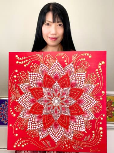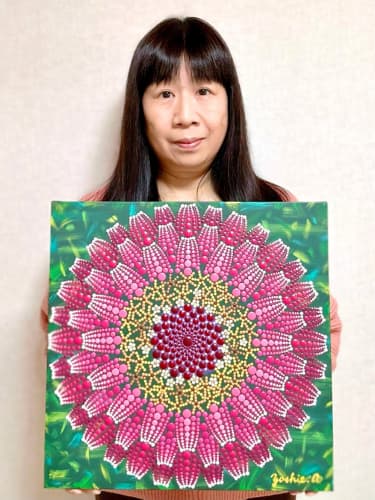 アート未経験の自分が、自ら展覧会を開き、作品を販売すると考えると、信じられないようなドキドキした気持ちになりますが、見た人に私らしさが伝わるようなマンダラを描いていくつもりです。